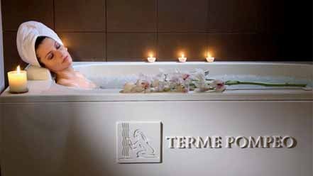 Oggi recenti studi attestano che l’acqua solfurea-bicarbonato-calcica, come appunto quella delle Terme Pompeo, è una terapia insostituibile nelle patologie dell’apparato respiratorio, in otorinolaringoiatria, nelle affezioni vascolari periferiche, in dermatologia e in reumatologia per le patologie osteo-articolari. Per sfruttare i benefici delle qualità terapeutiche dell’acqua termale sulfurea abbinati a manualità specifiche o alla fangoterapia, il Beauty Terme Pompeo offre una vasta gamma di trattamenti: massaggio benessere corpo con pioggia termale rilassante; massaggi modellanti con pioggia termale; fangoterapia sotto pioggia termale ad effusione. Qui l’acqua termale potenzia le proprietà esfolianti del fango maturato in acqua sulfurea.