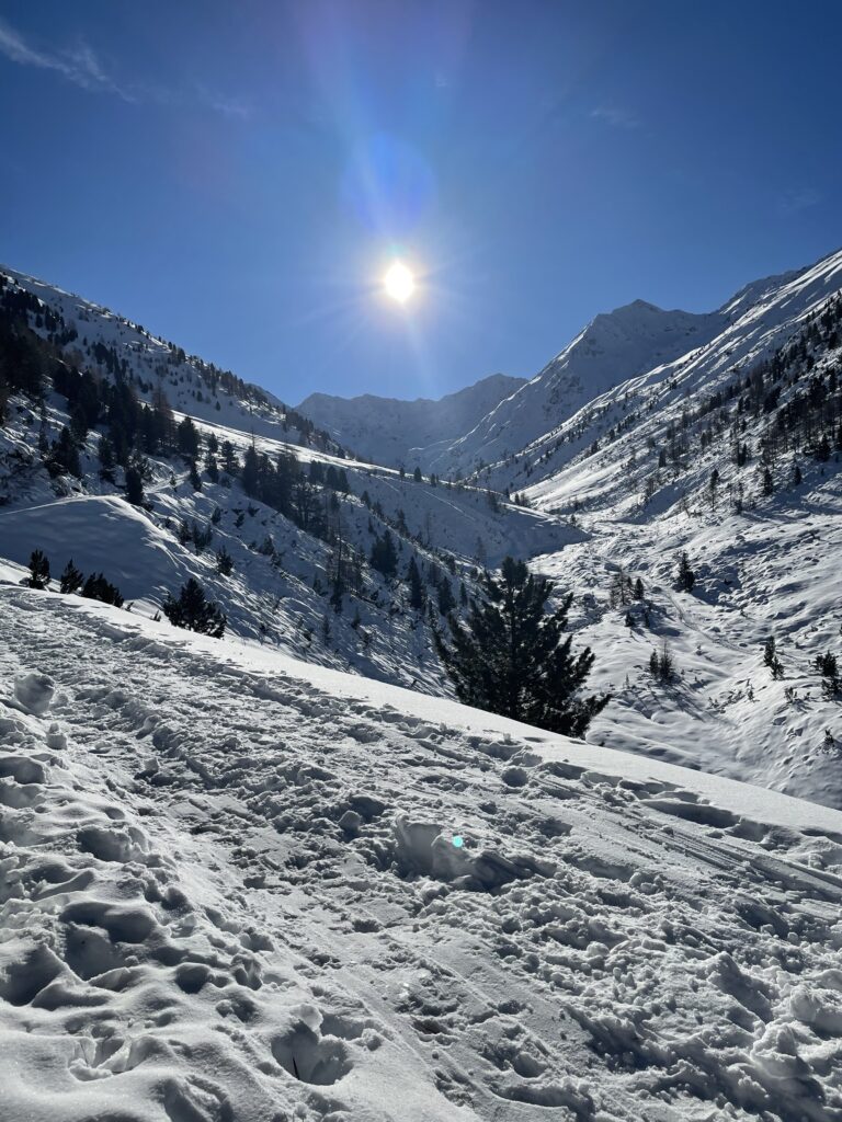 Le passeggiate invernali e le ciaspolate sono uno dei modi migliori per vivere Livigno. La pista pedonale battuta consente di camminare in piano collegando il centro al Lago di Livigno, un percorso suggestivo e adatto anche ai bambini. Tra le ciaspolate più belle spicca la Valle delle Mine, un itinerario semplice ma estremamente scenografico, dove il bianco della neve e il silenzio creano un’atmosfera quasi irreale.
