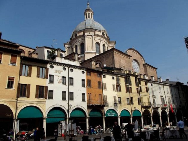 Dopo aver constatato che bellissime passeggiate e parchi circondano Mantova costeggiando i 3 laghi formati dal Mincio raggiungiamo Castel San Giorgio poi la Piazza Sordello dove ammiriamo solo da fuori il Palazzo Ducale , la casa del Rigoletto e visitiamo il Duomo. Attraverso il Passaggio di San Pietro .raggiungiamo prima piazza Broletto poi piazza delle Erbe passando sotto i bei portici pieni di bancarelle.