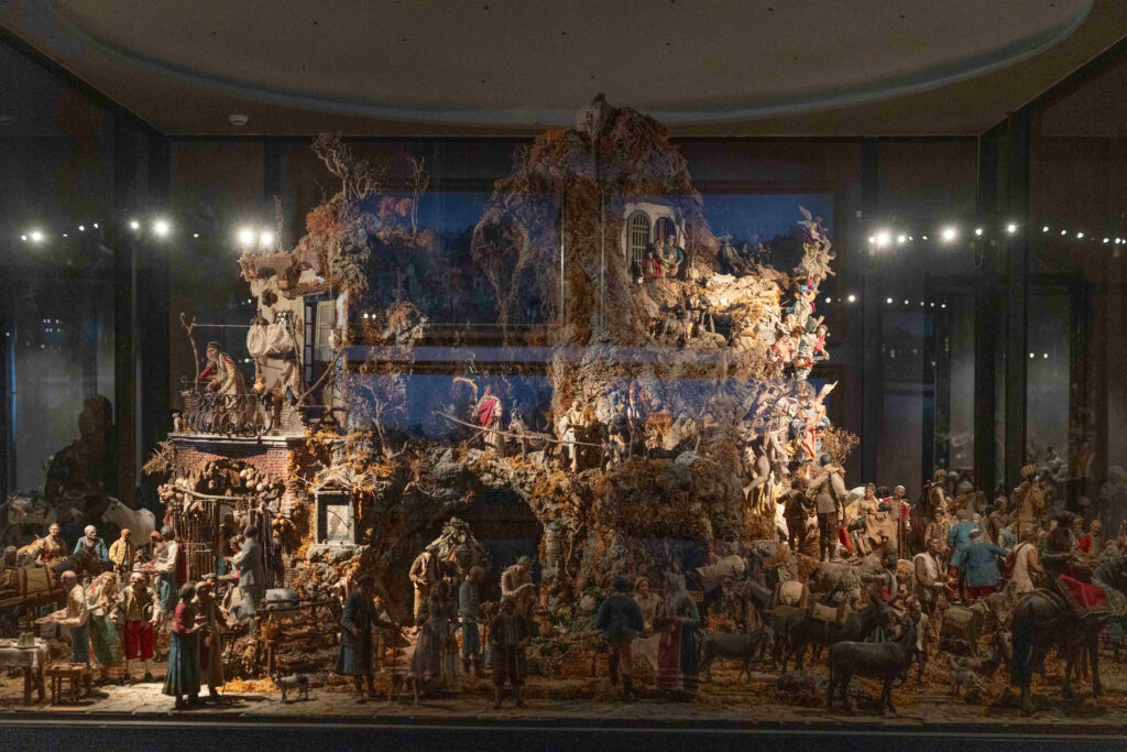 Il percorso presepiale è un piccolo teatro en plein air dove ogni scena ha la sua storia. Ci sono i lebbrosi che si muovono nell’ombra, i centurioni che controllano le strade, il palazzo di Erode con i suoi splendori, i pastori con il fuoco acceso, il mulino dell’olio dove le olive vengono frante con l’aiuto di un asinello paziente. E naturalmente la Natività, cuore pulsante dell’intero itinerario, dove bue e asinello vegliano sulla Sacra Famiglia.