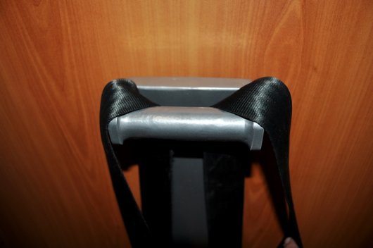 2) Prendo un po’ di misure basandomi sullo spazio a disposizione e sulla composizione dei cuscini della seduta: i due bracci laterali saranno larghi tanto da fare spuntare i pulsanti di sgancio accanto al cuscino; l’altezza del montante sarà tale da assicurare la corretta posizione della cintura sul petto dei passeggeri.