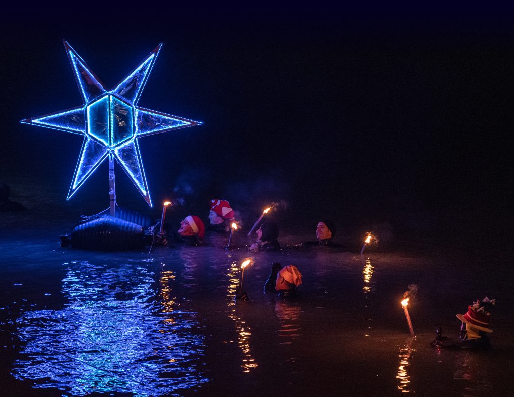 Al termine della funzione, dalle ore 18, animazione in centro storico con musica e canti natalizi con distribuzione di piccoli doni ai bambini e atmosfera di festa con musiche della tradizione con zampognari. I cantori di Comacchio si esibiscono, lungo le vie con un repertorio di canti in dialetto comacchiese (a cura dell’associazione Al Batal) mentre in piazza Folegatti e in fregio al Canal Maggiore i banchi del mercatino saranno allestiti su barche.
