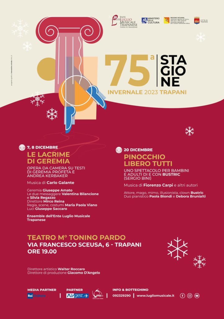 Il Luglio Musicale Trapanese, promotore culturale impegnato a portare la bellezza della musica e delle arti sceniche alla comunità, ha preparato un calendario fatto di iniziative natalizie per celebrare la stagione delle festività con arte e cultura di alta qualità.