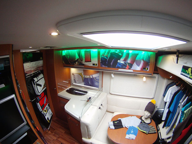 Il mezzo è perfetto per i creatori di fashion ed è stato modificato per le loro esigenze. L’autocaravan sarà usato come showroom mobile e sarà utilizzato per gli eventi presso i concessionari e le fiere come ISPO, BOOT e BRIGHT oppure servirà come stazione per le promozioni durante le manifestazioni più importanti per lo sport acquatico, come Kite-Word Cup a St. Peter-Ording oppure il Windsurf-World Cup a Sylt. Peter Arnold è entusiasta della variabilità dell’autocaravan: “E’ multifunzionale e versatile. Inoltre è un vero colpo d’occhio quando si espone durante i più importanti eventi tedeschi. Niesmann+Bischoff dimostra come possono essere innovativi ed eccezionali gli autocaravan durante il viaggio. Con l’Arto abbiamo il giusto mezzo per ogni esigenza”.