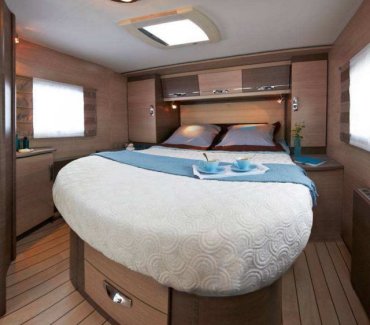 Impianti elettrici e idraulici assolutamente protetti e coibentati. Elettrificati l’oscurante cabina, l’accoppiamneto dei letti gemelli in matrimoniale e la posizione riposo del dorsale letto centrale che, arretrando, fa guadagnare spazio di movimemento nella zona notte.  Le piante seguono la nomenclatura del brand: LC i letti centrali a penisola, che diviene LCG quando il letto si alza su generoso vano garage,  LG i garage con lettro matrimoniale trasversale, LJ i letti gemelli bassi con grande bagno in coda e LGJ i gemelli che sormontano un garage passante.