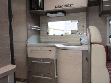 Sui Nordic Edition il riscaldamento ad acqua Alde è di serie, rivestimenti esterni in laminato alluminio per le pareti isolate con styrofoam 38 mm, antigrandine il tetto a conchiglia.  Struttura pareti in poliuretano, ossatura che lentamente sostituirà i listelli in legno in tutta la gamma Bavaria. Su tutti i modelli Fjord – telaio AlKo – il doppio pavimento ottiene il massimo di vani utilizzabili – passante in molti modelli. cucina Baltic