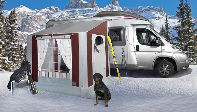L’azienda Mikitex, sempre attenta alle esigenze degli amici camperisti presenta in anteprima le foto del nuovo preingresso invernale per Camper “OLIMPO”.