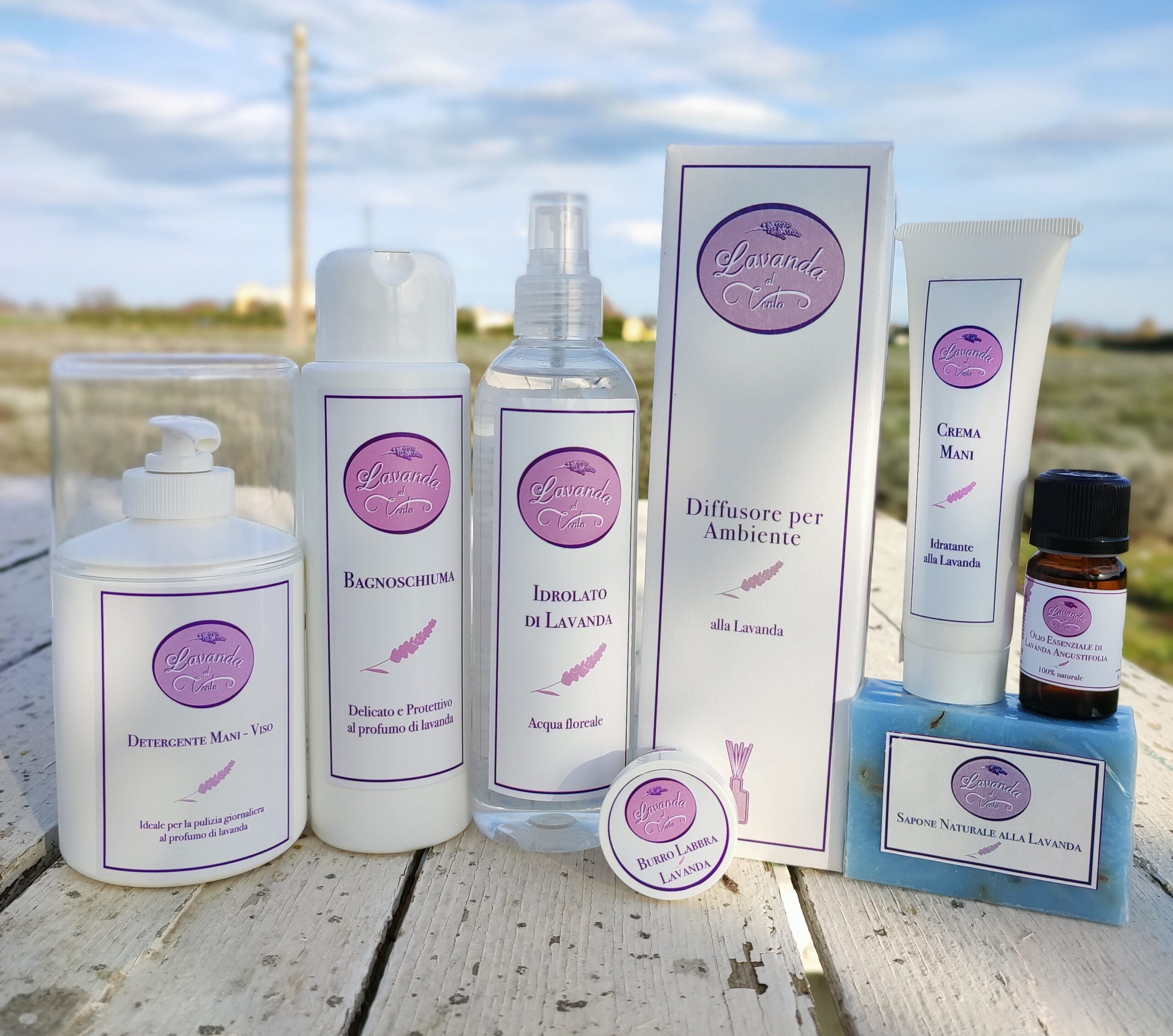Coltiviamo 15.000 piante di lavanda con amore e dedizione senza usare nessun componente chimico. Alla fioritura una parte viene raccolta per l’essiccazione da cui ricaviamo il fiore essiccato che inseriamo nei nostri sacchetti profumatori e tutto il resto lo distilliamo per ricavare il nostro olio essenziale di lavanda. Con il nostro olio abbiamo realizzato una piccola linea di cosmesi tutta al naturale.