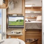 L’allestimento anteriore del Van Ti rispecchia lo styling delle linee Sky Ti e Sun Ti, con I loro ambienti assolutamente armoniosi. Gli sportelli dei pensili sono dotati di nuove maniglie dalla massima funzionalità. L’impianto elettrico è stato ottimizzato e quindi più facile da utilizzare. L’armadio contiene il portatv che, all’occorrenza, viene estratto ed orientate verso la direzione desiderata.
