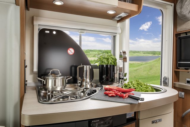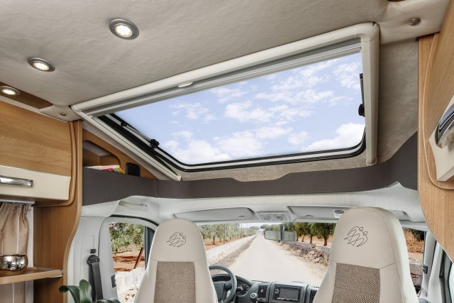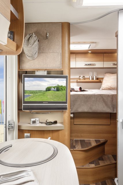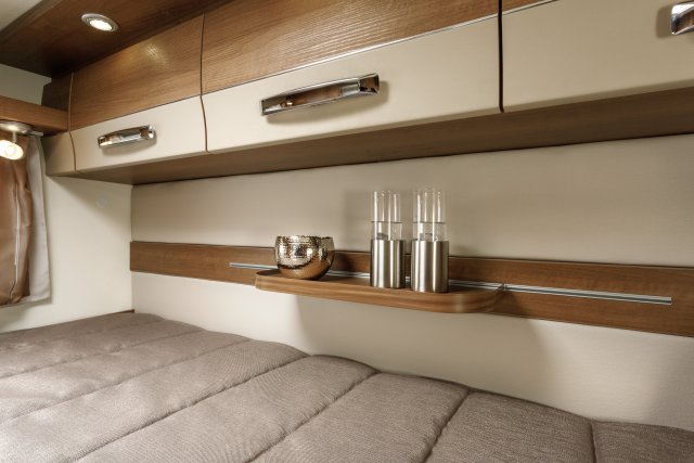 L’allestimento anteriore del Van Ti rispecchia lo styling delle linee Sky Ti e Sun Ti, con I loro ambienti assolutamente armoniosi. Gli sportelli dei pensili sono dotati di nuove maniglie dalla massima funzionalità. L’impianto elettrico è stato ottimizzato e quindi più facile da utilizzare. L’armadio contiene il portatv che, all’occorrenza, viene estratto ed orientate verso la direzione desiderata.