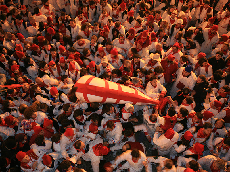 Quasi tutti i partecipanti indossano lu guazzarò, una semplice casacca di tela bianca bordata di rosso spesso decorata e dipinta. Con urla e schiamazzi, essi danno origine a movenze e corse che ricordano le tipiche feste taurine all’aperto spagnole, come quella celebre di San Fermín a Pamplona.