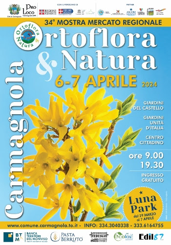 Sabato 6 e domenica 7 aprile, il Comune e la Pro Loco di Carmagnola organizzano la 34^ edizione di Ortoflora & Natura, mostra-mercato tra le più importanti in Piemonte per ciò che riguarda le produzioni del settore florovivaistico ed orticolo e delle attrezzature ed arredi da orto e da giardino.