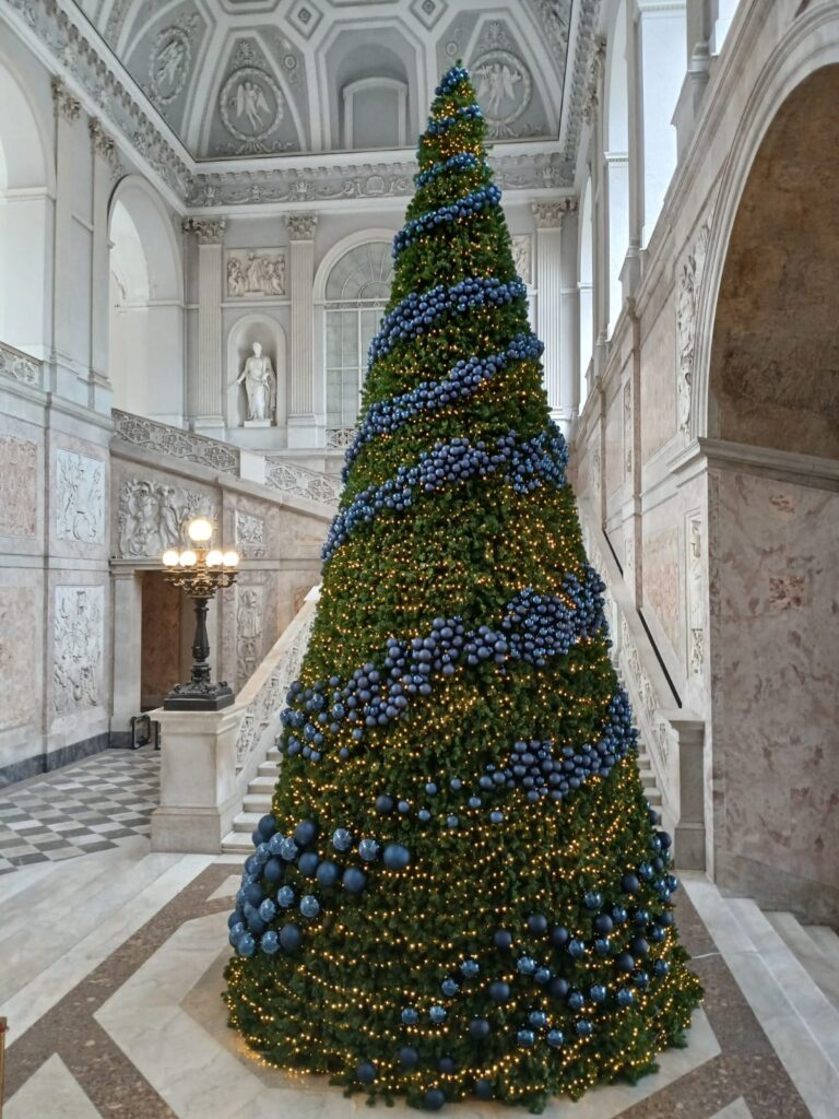 Come ormai consuetudine il grande albero di Natale sullo Scalone d’Onore, visibile sia dal Cortile che da Piazza Trieste e Trento, illuminerà le giornate di dicembre con le luci e il suo dress code che cambia ogni anno. Per questo Natale è il blu il colore dominante e ai piedi dell’albero alto 12 metri sarà posizionato, come da tradizione, uno scatolone dentro il quale i visitatori potranno imbucare una lettera con pensieri e desideri per il prossimo anno.