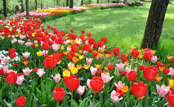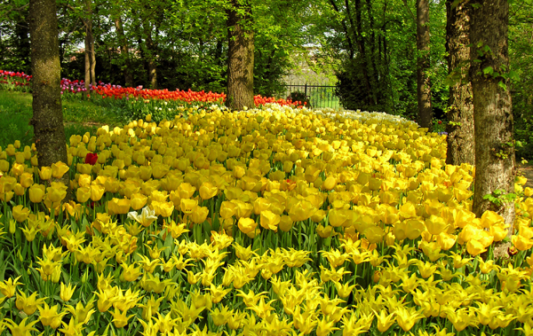 A questo punto potremo dedicarci a quella che, per molti visitatori, è la parte più attesa dell’intera visita, e che richiama un numero di visitatori sempre crescente negli anni: Messer Tulipano – con la sua sinfonia di colori – è lì ad attendervi! La cura con la quale ogni anno vengono valutati e scelti, qualità per qualità, tutti i bulbi, tra quelli che la produzione mondiale mette a disposizione sul mercato, spiega bene quanto intenso sia il lavoro necessario fin dalle sue stesse premesse: solo così, studiando per tempo l’intero progetto, si possono iniziare a disegnare le aiuole che poi prenderanno forma nei mesi successivi. Infatti ogni anno i bulbi vengono totalmente rinnovati proprio per offrire ai visitatori un colpo d’occhio impagabile e sempre differente, di edizione in edizione! Le mille sfumature dei colori, le altezze omogenee degli steli che consentono una perfetta visuale, la perfetta “maturazione” della fioritura (che ha anche il pregio non indifferente di durare piuttosto a lungo in condizioni perfette, anche grazie ai controlli giornalieri a cui vengono sottoposti i fiori dalla squadra dei giardinieri!) costituiscono tutti elementi assai importanti per offrire ad ogni visitatore questo straordinario spettacolo che ci parla di quanto sia splendida la Natura.