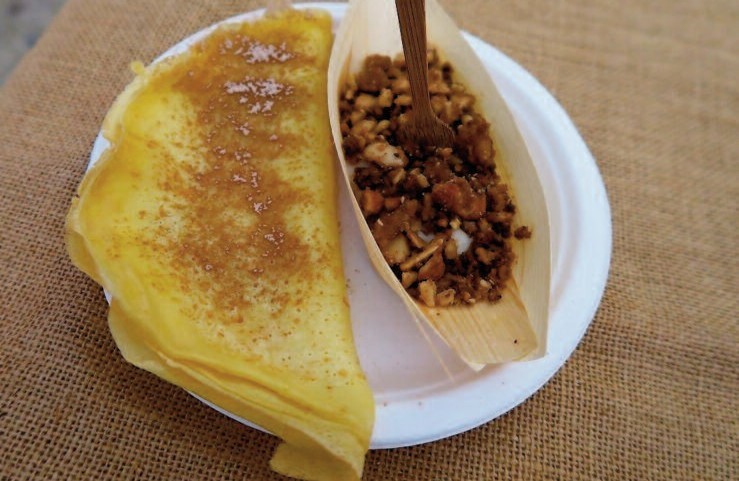 Infine, il quarto sembra un dolce alla vista e al gusto, ma in realtà è una pietanza di carne di pollo in crema mescolata con farina di riso, latte e zucchero cosparsa di mandorle tostate, cannella, zenzero e zucchero. Tutto accompagnato da pane nero e formaggio pecorino e un buon bicchiere di vino speziato.
