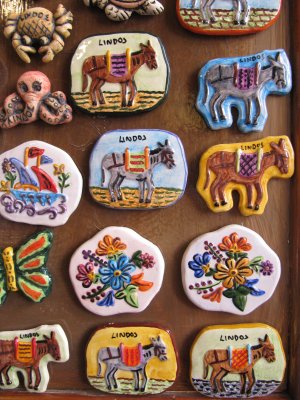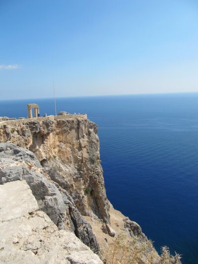 Polo di attrazione per tutti i popoli dell’antichità, aveva una struttura complessa, preceduto dalla Stoa e dai Propilei, arricchito da statue, esedre per la vittoria, bassorilievi in pietra, muraglioni di sostegno. Si sale con un certo impegno, visto il dislivello, anche se la salita é alleggerita dall’ombra degli alberi, dalle esposizioni di artigianato tipico lungo gli scalini, dalla vista del paese sul mare. Però si può sempre ricorrere ai pittoreschi asinelli che in carovana trasportano i turisti più pigri ai piedi dell’Acropoli. Ma attenzione al peso: c’è un limite anche per la schiena paziente degli asini!