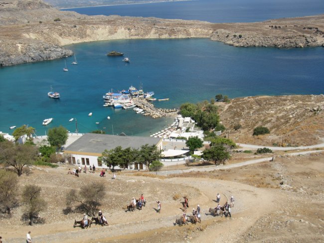 Tre città Stato convivevano pacificamente nell’isola fin dall’800 a.C. Tra queste Lindos è oggi la più spettacolare ed emozionante: una baia tranquilla sul mare blu, case bianche sparse nella campagna e raccolte nel paese, la chiesa dedicata alla Vergine del 15° secolo, con splendidi affreschi che la ricoprono interamente, e soprattutto l’Acropoli. Lassù, in cima ad un promontorio altissimo, difesa naturale da ogni attacco, si alzano i resti del famoso tempio di Atena Lindhia.