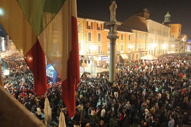 Da non perdere dalle ore 22 Visioni Di Eterno negli Antichi Chiostri Francescani con le  video proiezioni in 3D di quattro monumenti Unesco, realizzati da Andrea Bernabini: Galla Placidia Shines On (2011): Teoderico il Grande (2012);  Il Cielo Dorato (2013); Luce d’Oriente (2014).