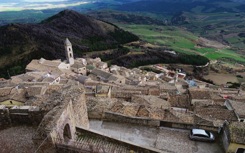 Sulla piazza la cabina telefonica dismessa è una “Bibliocabina” zeppa di libri disposti su scaffalature da scambiare gratuitamente, iniziativa di BookCrossing per incentivare la lettura con piccole biblioteche di strada. Sant’Agata appartiene al circuito culturale “Borghi della Lettura” e ha ottenuto dal MiBAC il riconoscimento di “Città che legge 2018/19”. Inerpicandosi, antiche chiese lungo la cinta muraria, palazzi signorili con sontuosi portali in pietra e chiavi di volta scolpite con stemmi nobiliari, l’antico frantoio ipogeo seicentesco con macina in pietra usata fino al 1927, il forno a paglia, la normanna chiesa di San Nicola, la romanica Sant’Andrea Apostolo e la “Piazzetta della Lettura” con una minuscola cavea dipinta come una biblioteca. Ancora su, fino al castello che dà il benvenuto con l’effigie del condottiero normanno Agatone, cui il barbiere recise la gola per impedirgli di esercitare lo “Ius primae noctis” con la sua giovane sposa, ci racconta il sindaco Luigi Russo. Intorno alla roccaforte, in età medievale si sviluppò un nucleo di abitazioni disposte a ventaglio con viuzze ripide tracciate sui tetti delle case sottostanti, rinserrate dalla cinta muraria su cui si aprivano cinque porte. Le folate di vento ci conducono su altre vette dei Monti Dauni.