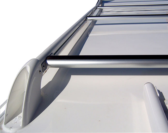 Le bagagliere progettate in stile Automotive, per adattarsi al design raffinato degli attuali veicoli ricreazionali, sono realizzate con profilo estruso in alluminio anodizzato. Grazie alla struttura modulare le bagagliere CTA sono estrema- mente versatili e permettono di comporre diverse configurazioni a seconda delle esigenze del camperista, dello spazio disponibile e degli ingombri sul proprio tetto.