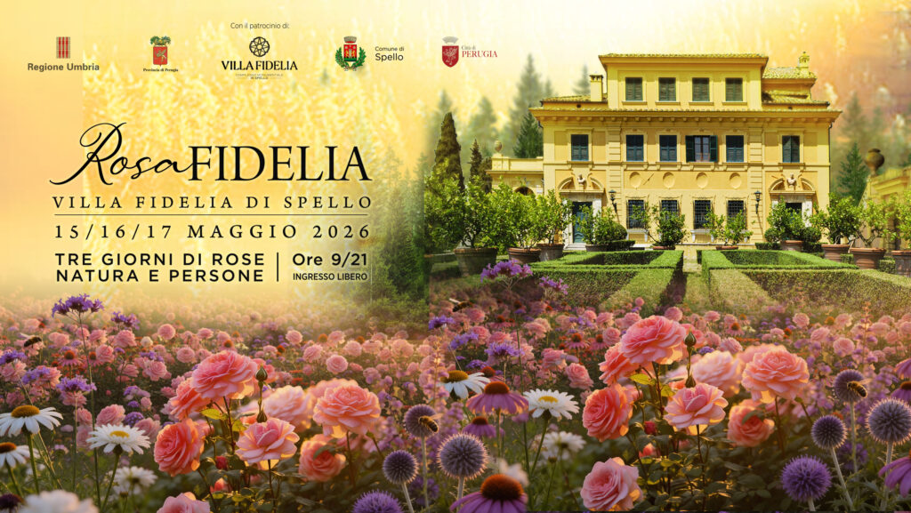 “Rosa Fidelia” rinnova l’appuntamento degli appassionati di rose, giardinaggio e vita all’aria aperta nella prestigiosa cornice del complesso monumentale di Villa Fidelia, a Spello (PG). La manifestazione offre a tutti, con ingresso gratuito, la possibilità di vivere tre giornate che celebrano e diffondono la cultura della rosa, del giardinaggio ed in senso più ampio dell’ecologia, degli stili di vita naturali, delle esperienze e dello stare insieme all’aria aperta. Kordes, Meilland, Tantau, Delbard, Minier ed altri ibridatori europei presenteranno in anteprima per l’Italia, rose, ortensie ed altre nuove introduzioni varietali, alla presenza di Helga Brichet (Former President dell’Associazione Mondiale delle Società delle Rose) . Rosa Fidelia sarà anche un evento ricco di esperienze immersive per adulti e bambini: un inno alla bellezza, un laboratorio di idee e un’occasione di incontro per vivere insieme un futuro più naturale, consapevole e felice. Nel motto della manifestazione (Tre giorni dedicati a rose, natura, incontri) Rosa Fidelia è felicità e intelligenza in piena aria. Il tema dell’edizione 2026 sarà La scelta. La manifestazione di Villa Fidelia (che riapre al pubblico dopo il restauro e dotata di un nuovo percorso esplicativo multimediale) vuole essere anche un momento collettivo di crescita e confronto. Dibattiti e momenti divulgativi con personalità e professionisti del verde arricchiranno il programma dei tre giorni. Nel parco e all’interno della Villa troveranno spazio elaborati di studenti, artisti, artigiani, associazioni ed altri appassionati che hanno iniziato, (o devono iniziare), percorsi ed esperienze legati ai temi del verde e della natura.