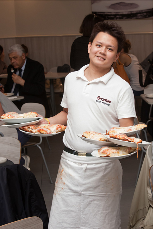Cucina  e  forno a  legna  sono  visibili  dall’esterno, per  trasmettere i  valori  genuini  e fidati  del  “fatto  in  casa”,  un messaggio di grande impatto anche  per  la clientela femminile giapponese che apprezza di poter controllare e capire da dove viene il cibo consumato in un locale.