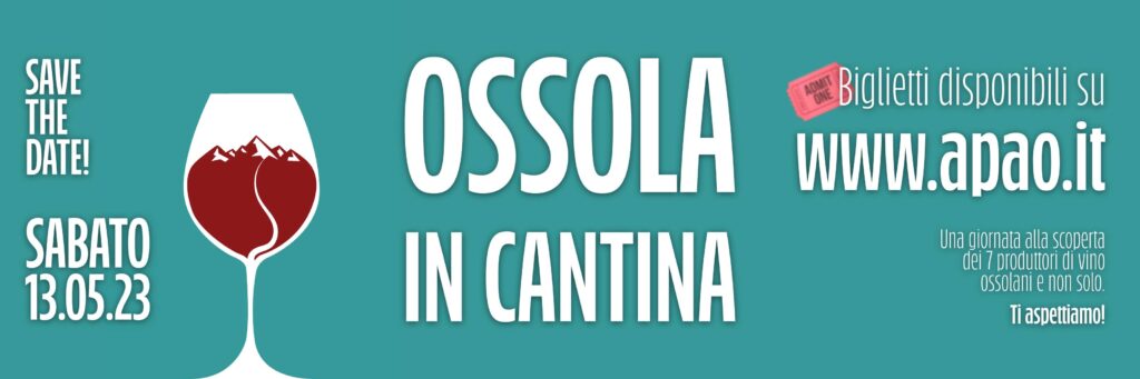 “Ossola in Cantina” è realizzata dall’Associazione Produttori Agricoli Ossolani (APAO) con la collaborazione dell’Associazione Italiana Sommelier Verbania e della Condotta Slow Food Valle Ossola e con il patrocinio della Regione Piemonte e dei Comuni di Domodossola, Crevoladossola, Crodo, Pieve Vergonte, Trontano e Villadossola.