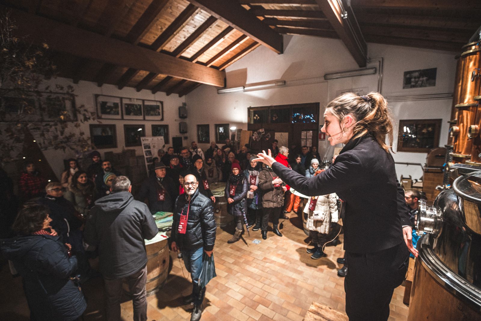“La Notte degli Alambicchi accesi” nasce nel 2007 dal desiderio di ricordare le lunghe nottate trascorse un tempo in distilleria per massimizzare la produzione giornaliera, quando era in vigore l’imposta forfettaria ereditata dall’impero austroungarico. Momenti di lavoro intenso, ma anche di comunità, con i distillatori che si facevano compagnia l’un l’altro tra racconti e assaggi, nel tradizionale “filò”.