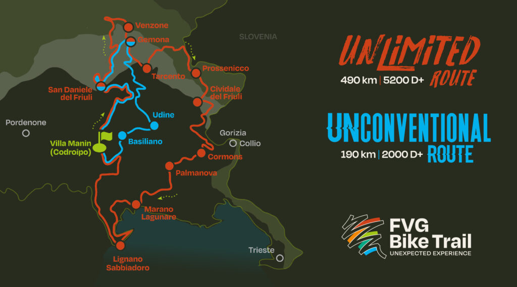 Per prendere parte all’evento è possibile scegliere tra due percorsi ad anello di diversa lunghezza e intensità: il più lungo da 490 km e con 5.200 D+ e uno più breve da 190 km con 2.000 D+. Ciascun percorso è stato studiato per regalare ai partecipanti un concentrato autentico di natura, storia e bellezza del territorio friulano e si snoda lungo le strade secondarie e forestali della regione. Dalle colline di San Daniele fino al litorale di Lignano, passando per Venzone, Gemona, le Valli del Torre e del Natisone, i Colli Orientali, Cividale, Palmanova e Marano Lagunare. “Da friulani e grandi appassionati del mondo bici, disegnare questi due percorsi è stata forse la parte più sfidante del progetto. Abbiamo cercato di dare forma a un racconto su due ruote capace di restituire, a chi lo percorrerà, una fotografia veritiera e inaspettata della nostra regione”, dichiara Giacomo Miranda, ideatore e organizzatore di FVG Bike Trail.