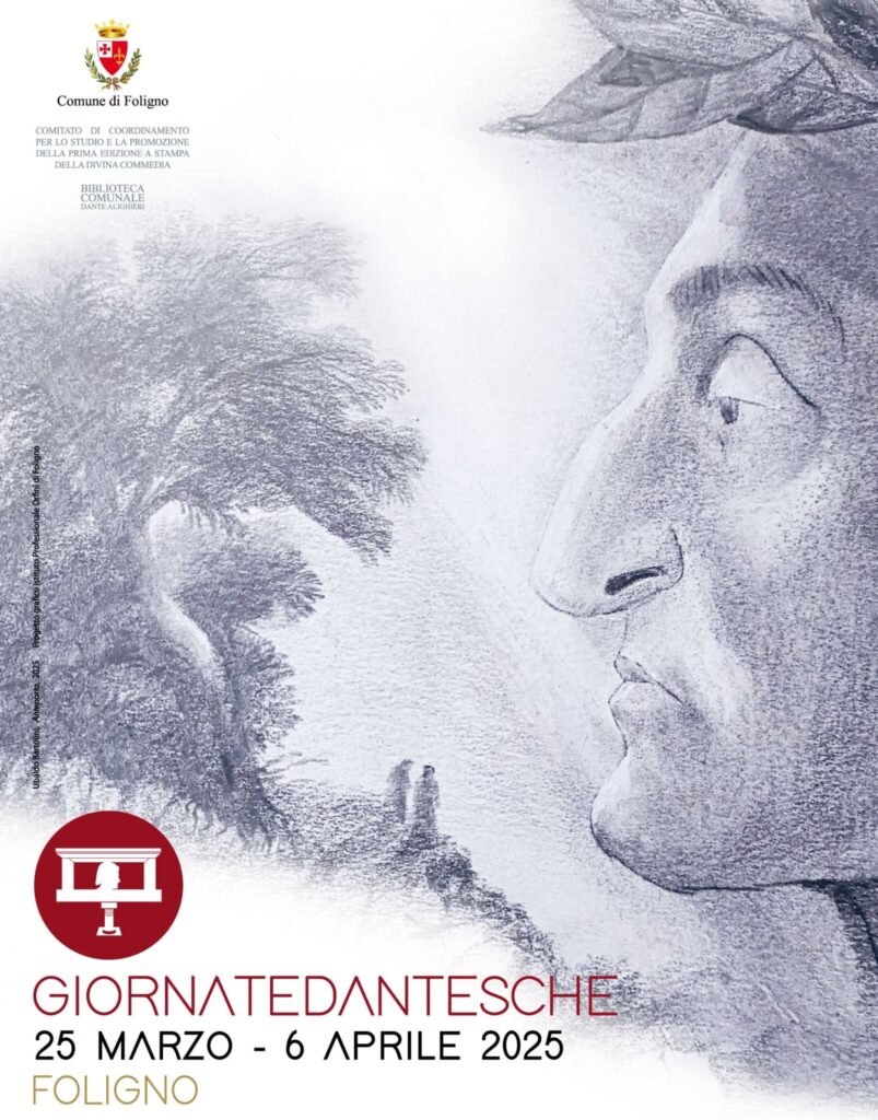A Foligno (Pg), in Umbria, torna sotto i riflettori il sommo poeta Dante Alighieri con la nuova edizione delle “Giornate Dantesche”, una settimana di incontri, dibattiti, conferenze, che animeranno la città umbra da lunedì 31 marzo a domenica 6 aprile 2025 celebrando Foligno come città dantesca, rimarcando il ruolo primario rivestito dalla città umbra sia nella storia della Divina Commedia, che nella storia della stampa.