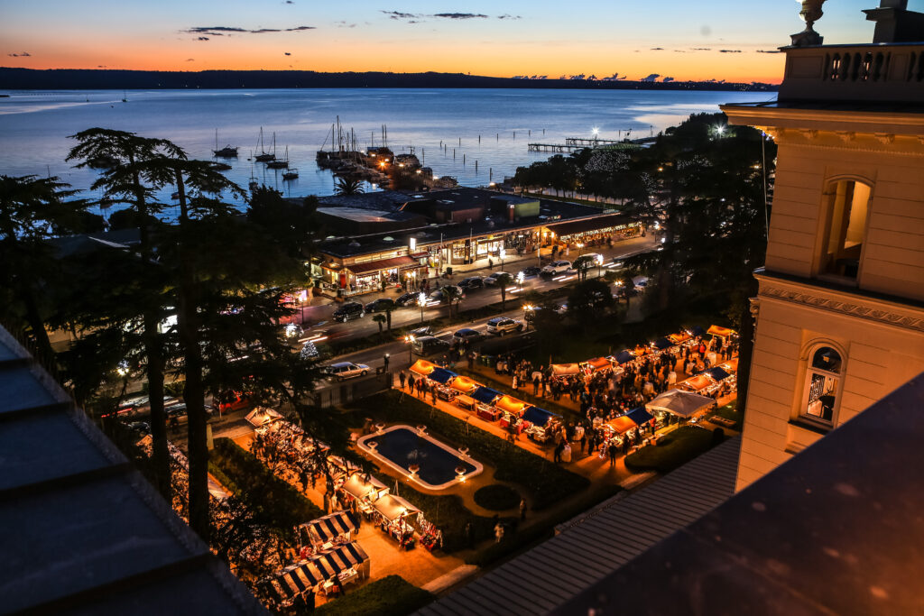 Chi l’ha detto che la cornice ideale per i mercatini di Natale sia per forza la montagna o qualche centro storico nordico? A Portorose sono affacciati sul mare e anche per questa loro collocazione, all’ombra dei pini marittimi, l’atmosfera è quella sognante delle feste, ma con un flair tutto mediterraneo. Sono allestiti nel parco curatissimo davanti al Kempinski Palace Portorož illuminato a tema, con i tradizionali chalet traboccanti di delizie.