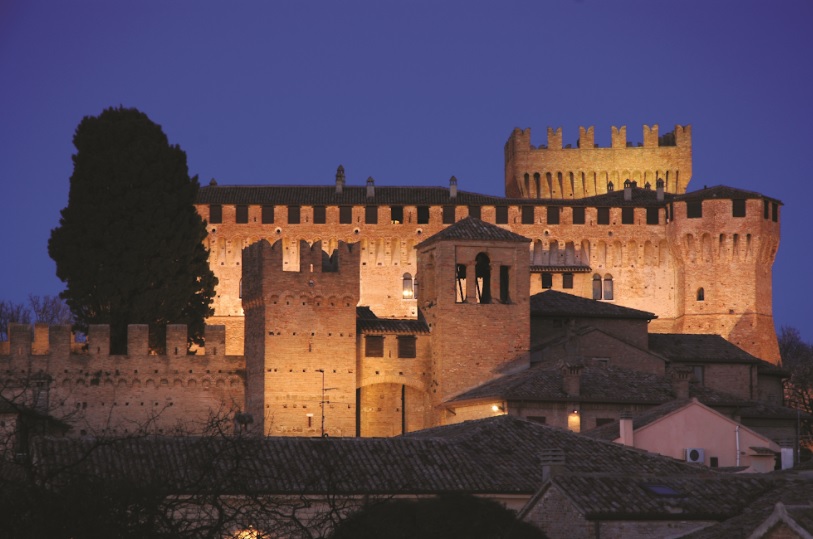 Sarà emozionante scivolare dolcemente lungo le pendici collinari fino a scorgere il mare dalle imponenti mura fortificate del borgo di Gradara, dove riecheggiano storie di amori tragici e struggenti che hanno fatto la storia della letteratura come quello di Paolo e Francesca, uccisi per adulterio e destinati così a volteggiare eternamente nell’Inferno dantesco. L’eco della loro passione, nata leggendo insieme il “libro galeotto” risuona ancora nei corridoi del castello fino alla famosa Camera di Francesca, tra passaggi segreti, torri merlate, affreschi e opere d’arte, come la tela di Giovanni Santi, padre di Raffaello e la pala in terracotta invetriata di Andrea Della Robbia. Le viuzze a spina di pesce del borgo sono da sempre teatro di sorprendenti rievocazioni storiche, spettacoli di falconeria, botteghe artigiane dove assaggiare prodotti tipici come i Tagliolini con la Bomba o il croccante Gradarino.